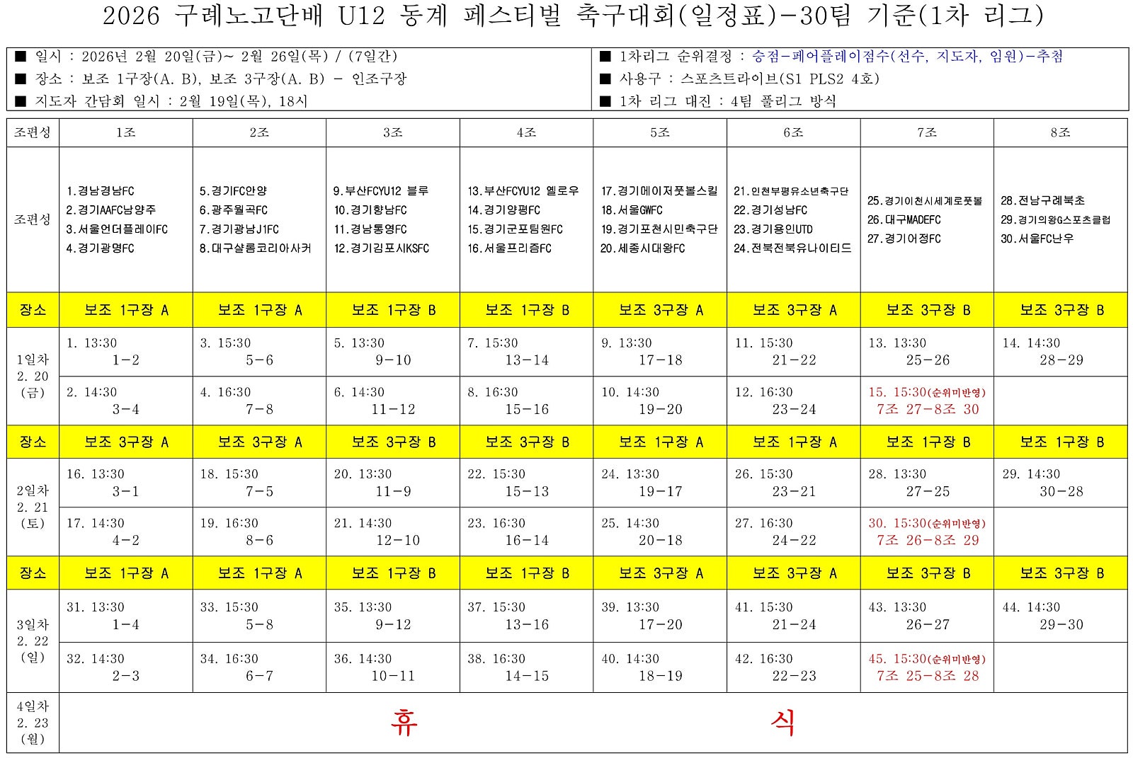 참가 팀 : 인천유나이티드U12, FC석남서U12