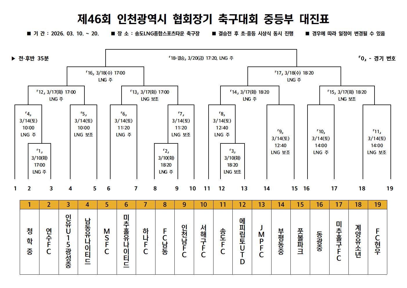 참가 팀 : FC현우, 부평동중, JMPFC, 송도FC, 인천유나이티드U15광성중