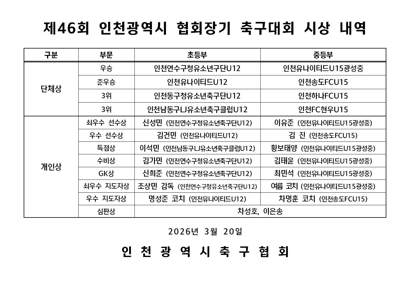 제46회 인천광역시 협회장기 축구대회 (초·중등부)