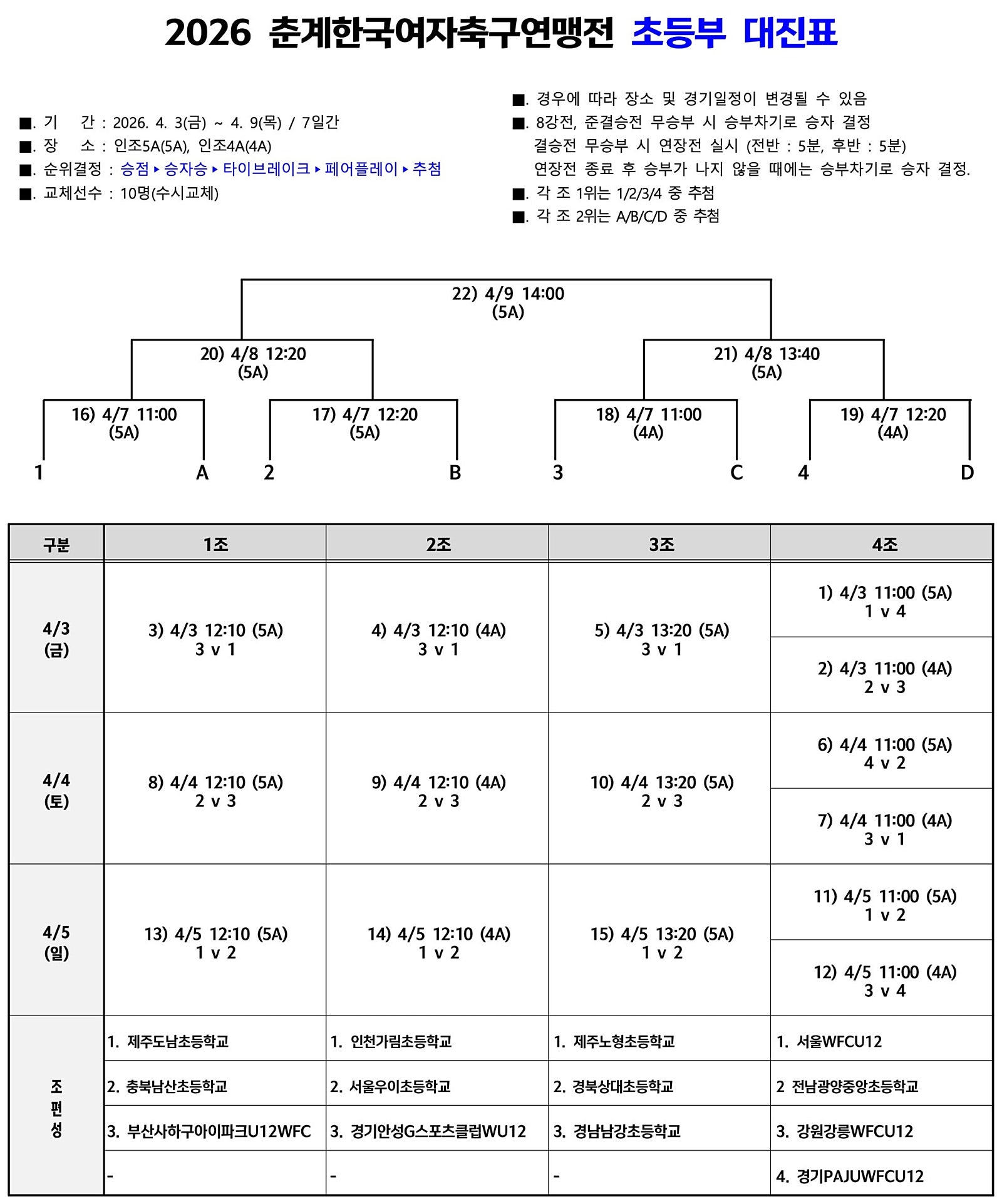 참가 팀 : 부평구청유소년축구단U12, 송도FCU12, 남동구LJFCU12, 미추홀UTDU12, 두팍FCU12