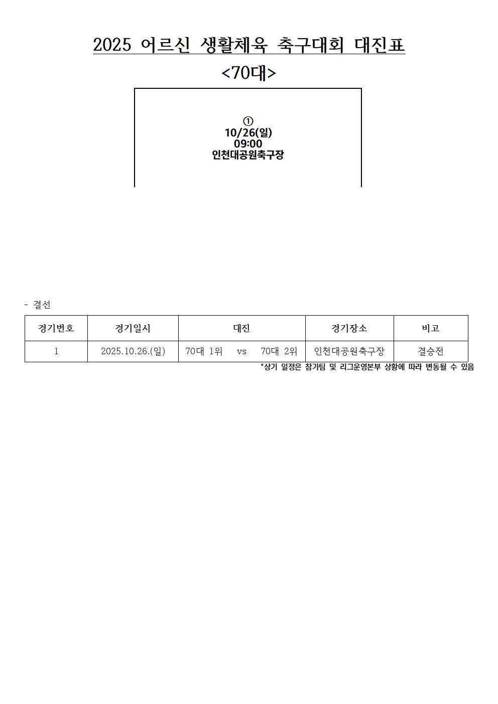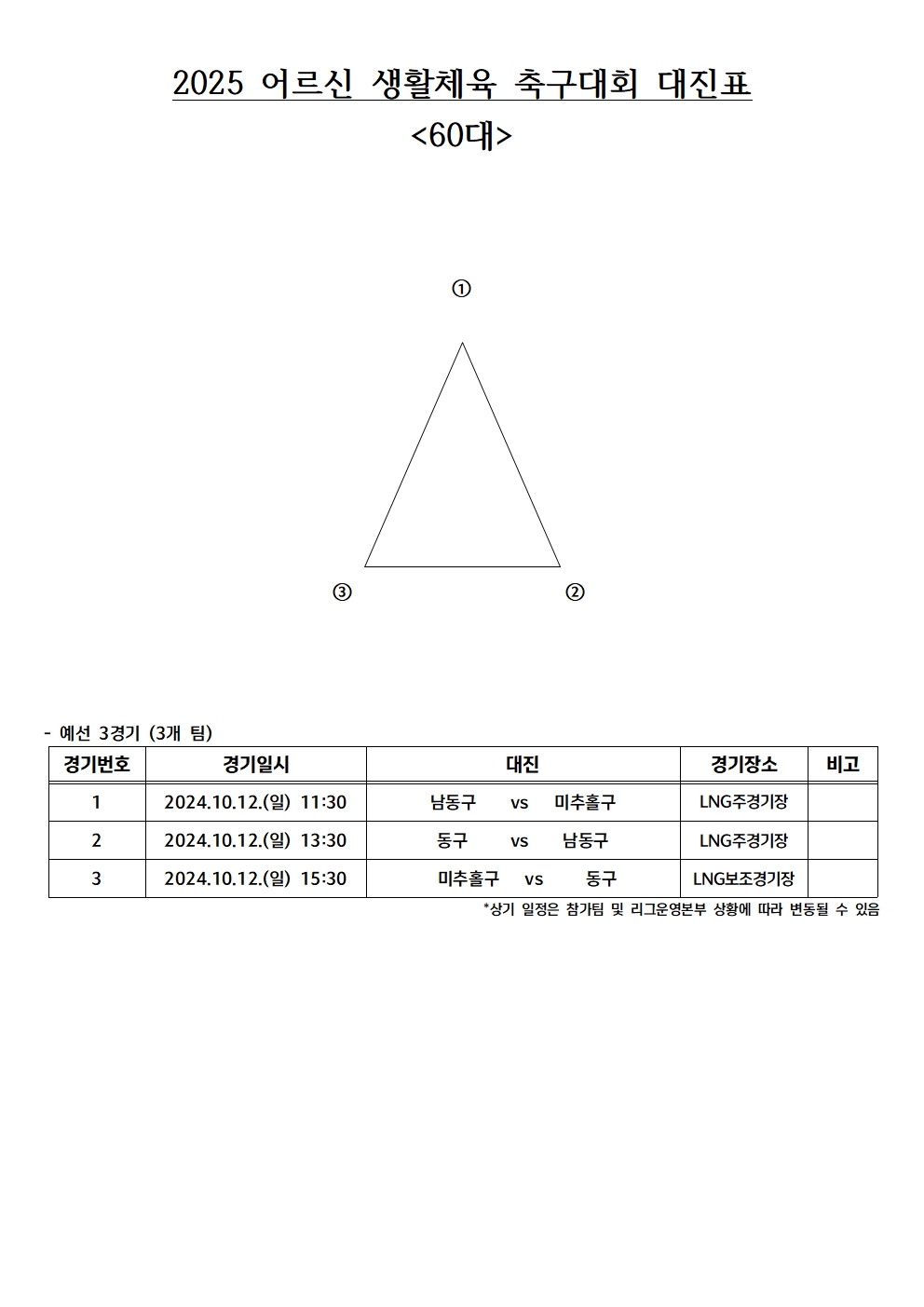 상세 일정은 joinkfa.com(통합경기정보 시스템) 참고 요망: