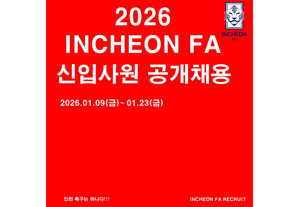 인천광역시축구협회의 일원으로 대회 및 리그 관련 업무를 수행할 인재를 채용하고자 하오니 축구를 좋아하는 유능한 분들의 지원을 기다립니다.